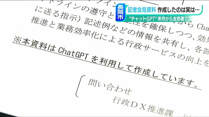 新潟県長岡市は、業務量の削減やサービスの向上を目指して、対話型AI=「チャットGPT」を7月から全ての部署で利用すると発表しました。