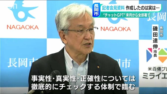長岡市では、AIを使う際の個人情報の扱いなどセキュリティー上のルールを定めたガイドラインを作っていて、職員への研修を行った上で利用するとしています。