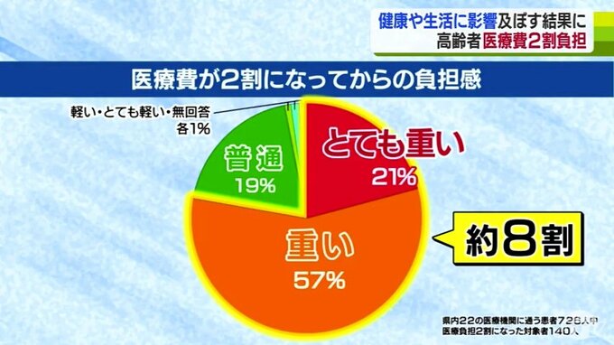 2022年10月から75歳以上の後期高齢者の医療費が2割負担になった影響について、約8割が負担が重いと感じ、「受診をためらうようになった」と健康に影響を及ぼすような実態が青森県民主医療機関連合会のアンケート調…