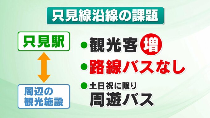 たとえば、只見駅では観光客が増えていますが、駅から観光施設などをつなぐ路線バスはありません。現在は、土日などに限って町の周遊バスが、運行しています。