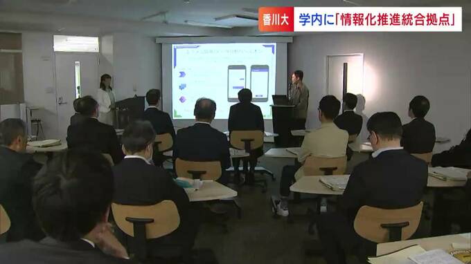 香川大学に作られた情報化推進統合拠点です。国の支援を受けて整備されました。情報メディアセンターやDX推進研究センターなど、4つの組織を統括して、大学のDX化などを進めます。