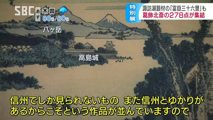「地元であまり知られていないと思うんですけど、世界的に有名な富嶽三十六景の中に諏訪湖が描かれているというところ、信州でしか見られないもの、また信州とゆかりがあるからこそという作品が並んでいますので、そこらへんをじっくりご覧いただきたいと思います」