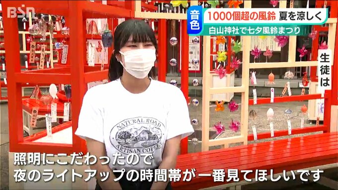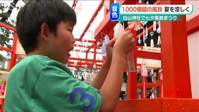 また風鈴には、七夕の短冊を飾ることができ、30日は白山小学校の児童が願いを込めて飾りました。