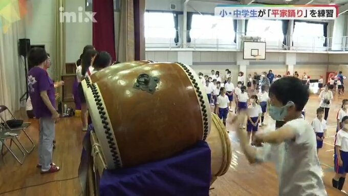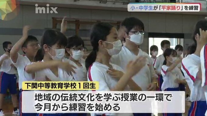下関市の小学生と中学生が、地元のまつりで披露しようと伝統芸能「平家踊り」の練習をしました。