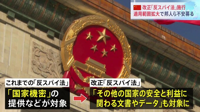 中国でスパイ行為の範囲を拡大した改正「反スパイ法」が、きょう、施行されました。現地で暮らす日本人は「何をしたら拘束されるのか、誰もわからない」と不安を募らせています。北京で働く日本人「どういう行動を…