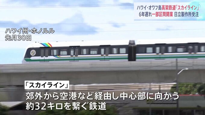 日立製作所が受注し、アメリカ・ハワイのオアフ島で建設が進められてきた鉄道が30日、一部区間で開業しました。オアフ島で開通した高架鉄道「スカイライン」は、州都・ホノルルの郊外から空港などを経由し中心部に…