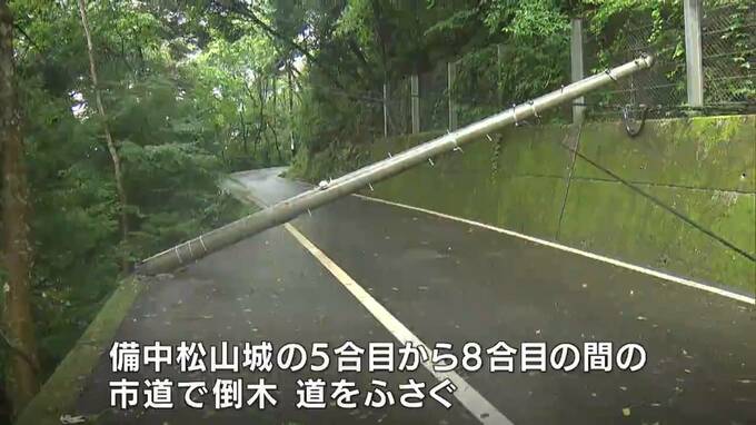 現場は、備中松山城の5合目から8合目の間で、復旧のめどは立っておらず、対応は週明けになるということです。