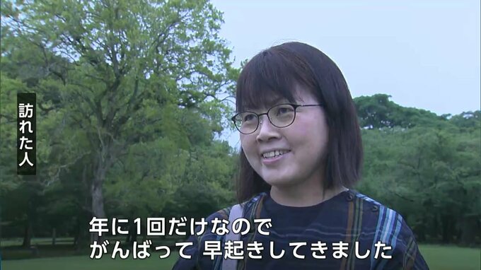 (訪れた人)「朝じゃないと見られない。年に1回だけなのでがんばって早起きしてきました」