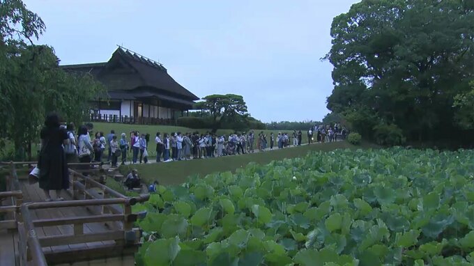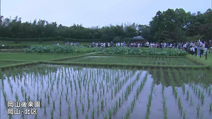 岡山後楽園では、夜明けとともに開花するハスを楽しんでもらおうと年に一度、午前4時に開園しています。