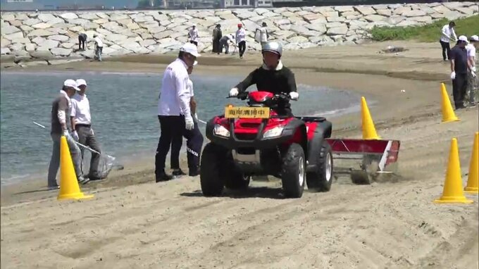 自動車メーカーのホンダが独自に開発した砂浜の清掃用の機材を使って観音寺市でビーチクリーン活動が行われました。ホンダが独自に開発した、砂浜を走行するだけでゴミをかき出し回収できる「ビーチクリーナー」で…