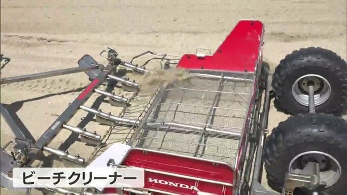 ホンダが独自に開発した、砂浜を走行するだけでゴミをかき出し回収できる「ビーチクリーナー」です。