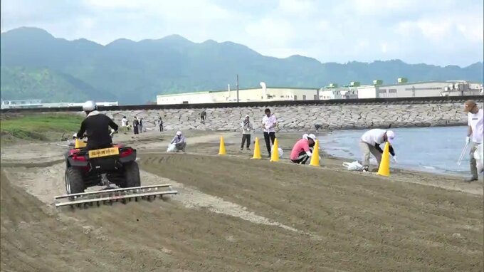自動車メーカーのホンダが独自に開発した砂浜の清掃用の機材を使って観音寺市でビーチクリーン活動が行われました。