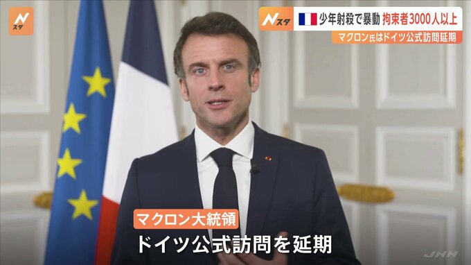 外交にも影響がでています。パリ郊外で17歳の少年が警察官に射殺されたのをきっかけにフランス全土に広がった暴動は、5日目となった7月1日も続き、現地メディアによりますと、1日夜には719人が拘束されました。拘…