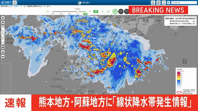 気象庁は、午前6時29分、熊本県に「線状降水帯発生情報」を発表しました。この情報が発表された地域では、線状降水帯によって非常に激しい雨が降り続き、土砂災害や浸水、河川の洪水など災害の発生する危険度が急…