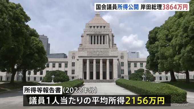 国会議員の去年の所得が公開されました。1人当たりの所得総額の平均は2156万円で、各党の党首では自民党総裁の岸田総理が3864万円でトップでした。きょう公開された国会議員の2022年分の「所得等報告書」によりま…