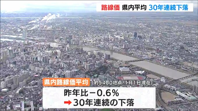 関東信越国税局によりますと、今年1月1日時点での県内およそ5400地点における路線価の平均は22年と比べて0.6パーセント下がりました。
