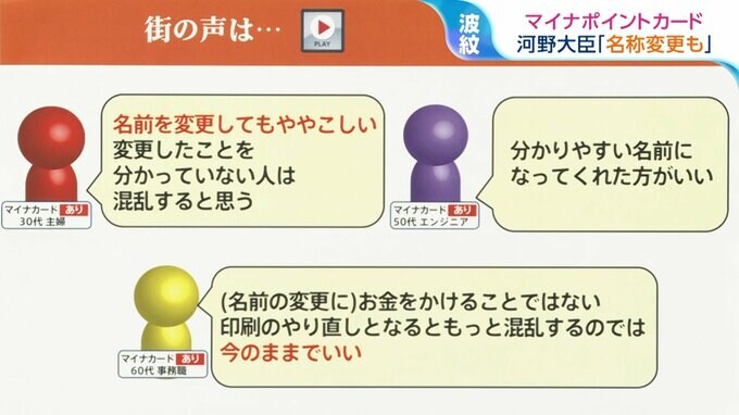 「そこにお金かけることじゃない。また全部印刷もやり直しとすると、もっと混乱するんじゃないかなと。今もマイナンバーカードで通ってるからそのままでいいんじゃないかなと思いますけど。(問題は)そこじゃないですよね。」