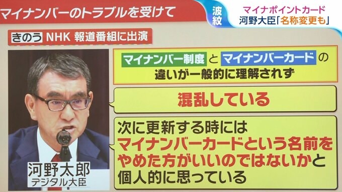 トラブルが相次ぐマイナンバーカード。河野大臣が‟名称変更”に言及しました。
