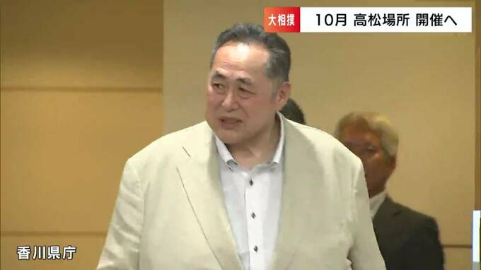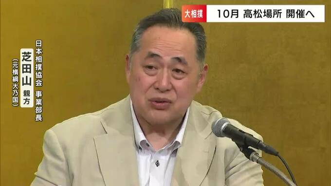 日本相撲協会の事業部長で元横綱大乃国の芝田山親方が、「10月22日に力士ら約200人が参加し、大相撲高松場所を開催すること」を報告しました。香川県での開催は5年ぶりです。