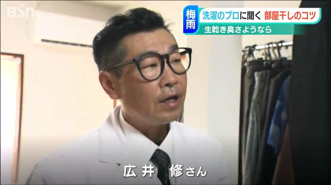 BSN新潟放送の記者のアパートで生乾き臭の対策を教えてくれたのは、元クリーニング店店長の広井修さん。