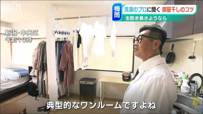 BSN新潟放送の記者のアパートで生乾き臭の対策を教えてくれたのは、元クリーニング店店長の広井修さん。