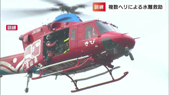 岡山県高梁川の河川敷で、これから発生が懸念される水の事故に対応するため、ヘリコプターを使用した水難救助訓練が行われました。訓練には、倉敷市消防局や岡山県警の航空隊など、8つの団体から約70人が参加しま…