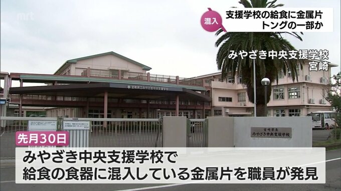 宮崎県教育委員会は、先月30日に宮崎市の支援学校で提供された学校給食に金属片が混入していたと発表しました。児童・生徒らにけがはありませんでした。県教育委員会によりますと、先月30日、県立みやざき中央支援…