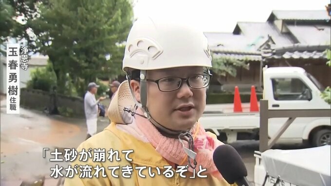 「状況に気づいたのは朝の7時くらいでしたね。隣に住んでいる前々住職が電話をくれて『土砂が崩れて水が流れてきているぞ』ということで。仏像だけを移動させてやっているうちに本堂の崖側から土が壁を突き破ってやってきて」