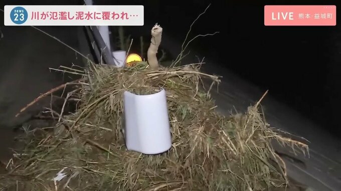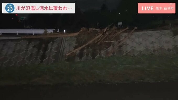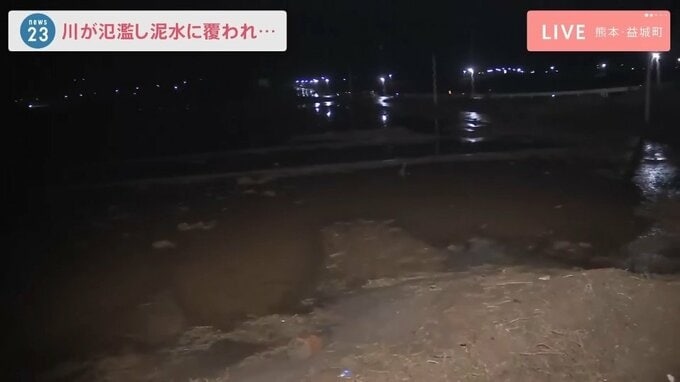 現場から中継 川が氾濫し泥水が…