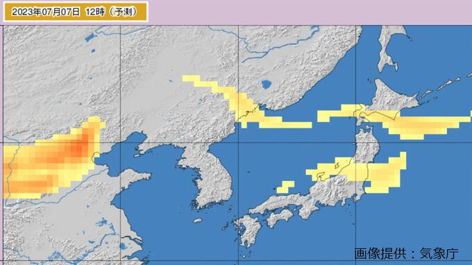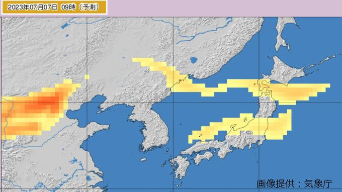 気象庁の黄砂観測実況図によりますと、黄砂はきょう(7日)午後にかけて日本列島の広い範囲を通過する見込みです。