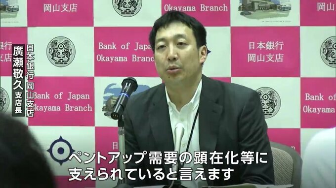 (日本銀行岡山支店 廣瀬敬久 支店長)「新型コロナの5類移行による宴会旅行等に代表されるペントアップ需要の顕在化等に支えられていると言えます」