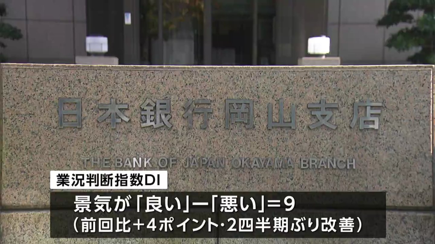 日本銀行岡山支店は3か月ごとに行なっている短観・企業短期経済観測調査で、6月の結果をまとめ、2四半期ぶりの改善としました。