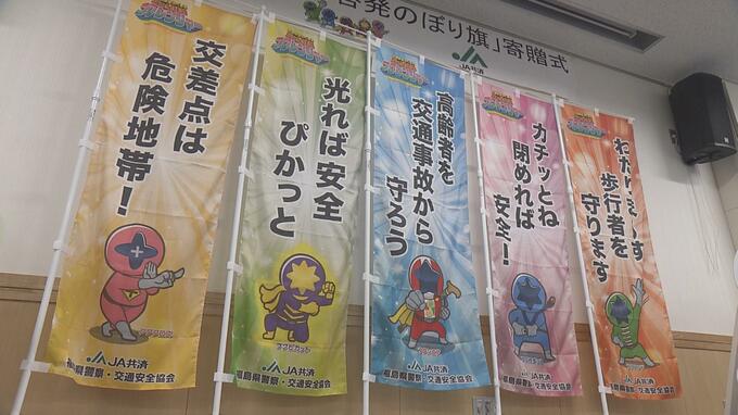 交通事故のない地域づくりを目指して、交通安全協会などにのぼり旗が贈られました。福島県警察本部で行われた贈呈式ではJA共済連福島の服部道夫本部長から、県交通安全協会の小櫻輝会長と県警察本部の児嶋洋平本部…
