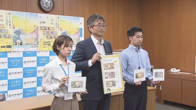 来年7月に発行される「新しい紙幣」が3日、日銀福島支店で披露されました。今回のお札は、見る角度によって顔の向きが変わります。