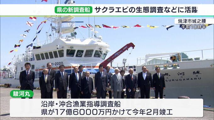 サクラエビの生態調査などにあたる静岡県の新しい船「駿河丸」がお披露目されました。 沿岸・沖合漁業指導調査船の「駿河丸」は静岡県が17億6000万円かけて2022年2月に竣工しました。これまで、水深1000mまでだっ…
