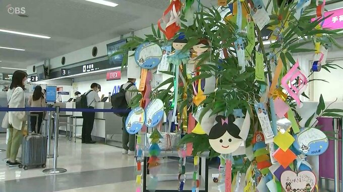 7月7日の七夕を前に大分県豊後大野市の園児が大分空港を訪れ、願いごとを書いた短冊を飾り付けました。全日空と大分航空ターミナルは利用者に季節感を味わってもらおうと毎年この時期に七夕飾りをしています。カウ…