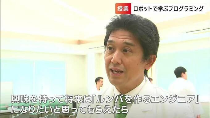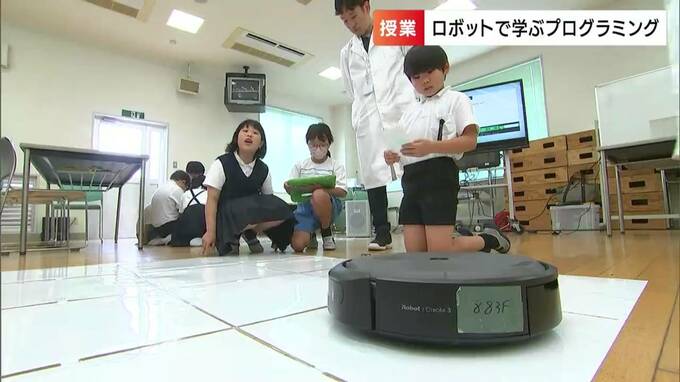 (古川豪太記者)子どもたちがロボットを動かすプログラミングを学ぶ、動かすのはこちらのロボット「掃除機」のルンバです。