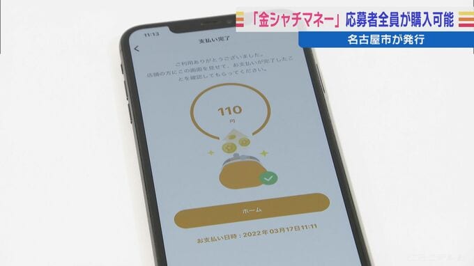 名古屋市が発行するプレミアム商品券の電子版「金シャチマネー」は応募者全員が購入できることになりました。名古屋市が発行するプレミアム商品券は、紙と電子の2種類があり、1万円で1万3000円分の買い物や食事な…
