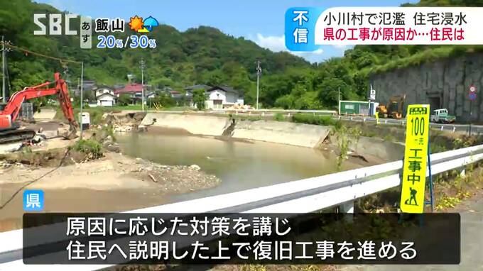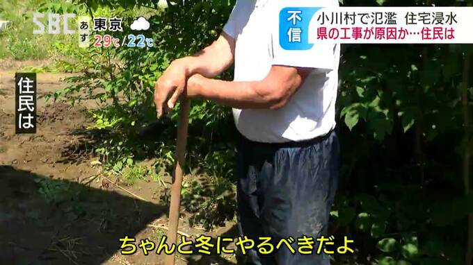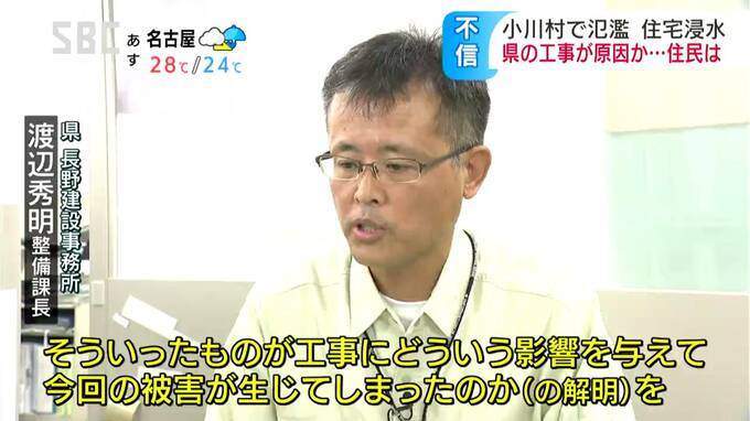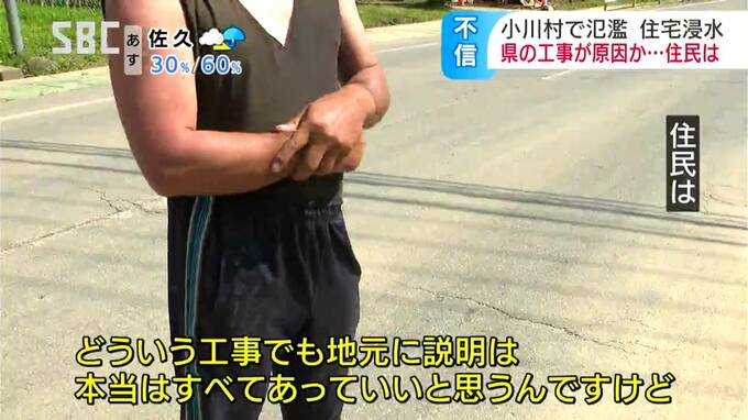 小川村で1日、長野県の河川工事が原因で住宅6戸が浸水したと見られる問題で、住民からは県の対応をめぐり不信の声が上がっています。
