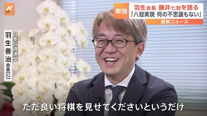 日本将棋連盟の羽生会長がきょう、単独インタビューに応じ、前人未到の八冠に期待がかかる藤井七冠について語りました。日本将棋連盟 羽生善治 会長「(藤井七冠の)今の実力や勢いみたいなものは、やはり間違い…