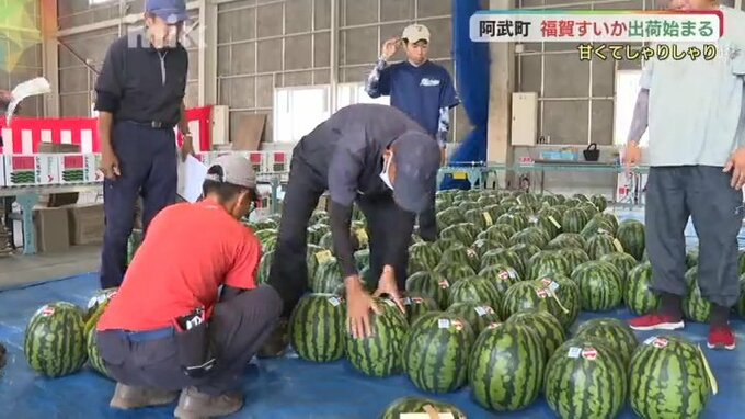 阿武町の山間部で特産の「福賀すいか」の出荷が始まりました。
