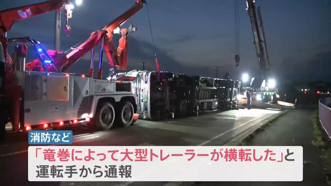 ・地元消防などによると「竜巻によって大型トレーラーが横転した」と運転手から通報あり