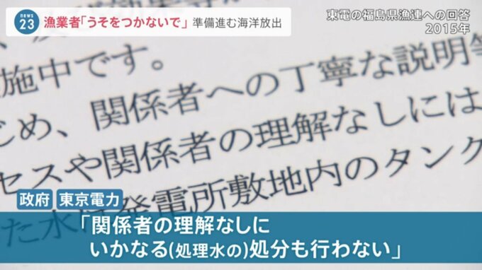 処理水の海洋放出について、政府と東電は2015年に福島県漁連と書面で約束しているのです。