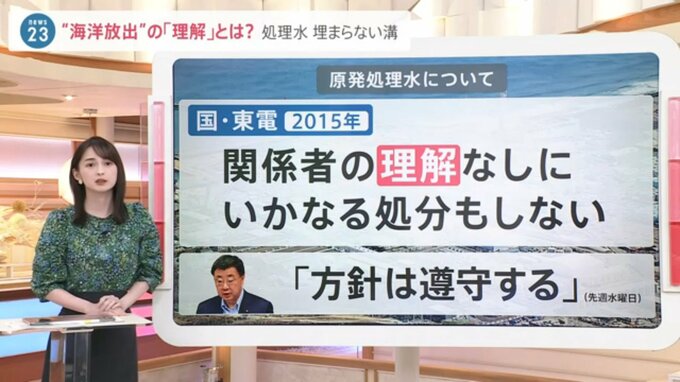 そうした現状がある中で、国や東電が漁業者と交わした「関係者の『理解』なしにいかなる処分もしない」というこの約束。これについて今後どうなるのでしょうか。