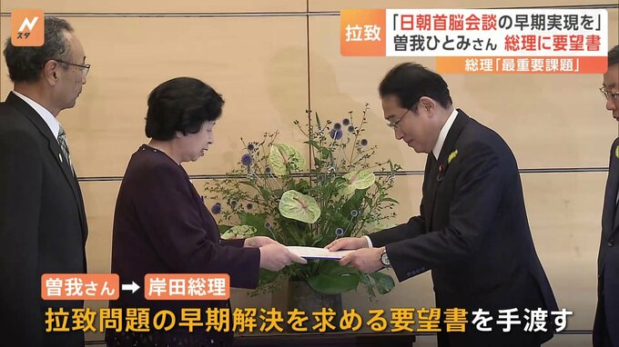岸田総理は北朝鮮による拉致被害者の曽我ひとみさんと面会しました。曽我さんが日朝首脳会談の早期実現を求めたのに対し、岸田総理は拉致問題の早期解決に全力を尽くす考えを伝えました。曽我ひとみさん「(金総書…