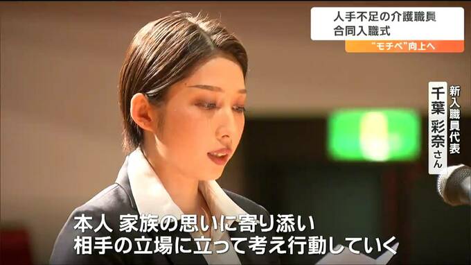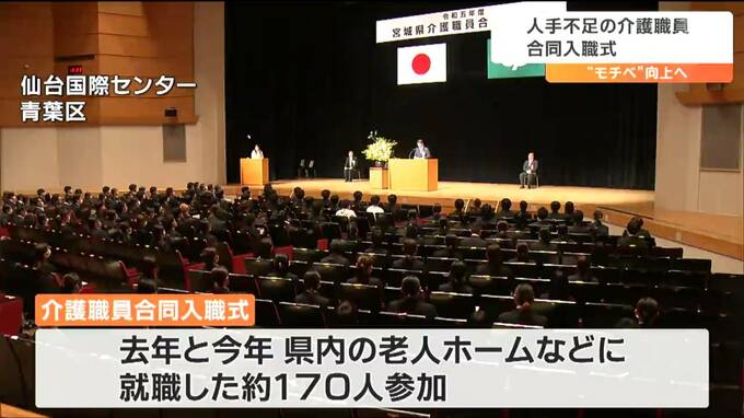 人手不足が深刻な介護の現場で働くモチベーションを向上させようと「同期」が一堂に会しました。宮城県内の介護施設で働き始めた新入職員の合同入職式が、仙台で行なわれ、出席者は「利用者の思いに寄り添いたい」と決意を新たにしていました。