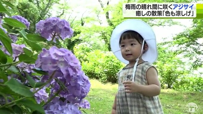 5日の青森県内は一時的に梅雨の影響が弱まる梅雨の晴れ間で、11地点で夏日を観測するなど暑い1日となりました。弘前市では公園でアジサイを楽しむ人の姿が多く見られ色とりどりの花が訪れた人を涼ませています。5…