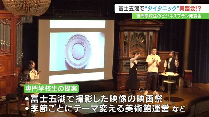 生徒たちは5人一組でチームを組み、富士五湖地域で撮影した映像の映画祭や、季節ごとにテーマを変える美術館の運営などを提案しました。
