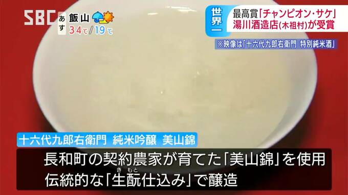 イギリスで開かれた世界最大規模のワイン品評会の日本酒部門で木祖村の湯川(ゆかわ)酒造店の純米吟醸が最高賞を受賞しました。