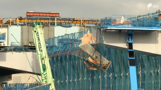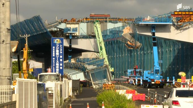 警察によりますとバイパス道路の上に、高架道路の建設が進められていた現場で橋げたが落下したということです。